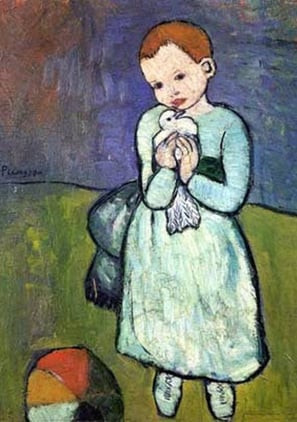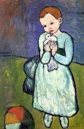 Una de las obras más tiernas y conocidas de su etapa inicial. Representa a un pequeño abrazando una paloma, símbolo de paz y esperanza. Aunque la paleta es más clara que la de Niño Triste, el tema de la vulnerabilidad infantil es común. Esta obra también ha sido interpretada como una metáfora de la inocencia amenazada.