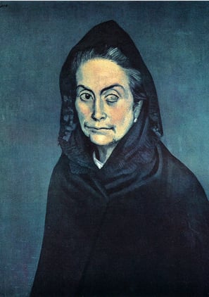 Aunque no trata de la infancia, esta figura de una anciana ciega refleja el mismo enfoque compasivo hacia los marginados. Picasso, durante la Época Azul, se interesó por retratar a los invisibles de la sociedad: ancianos, enfermos, pobres y niños solitarios.
