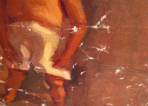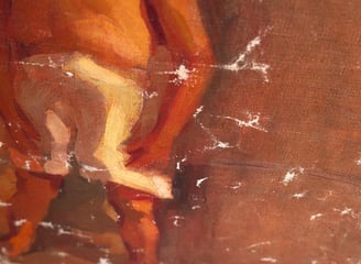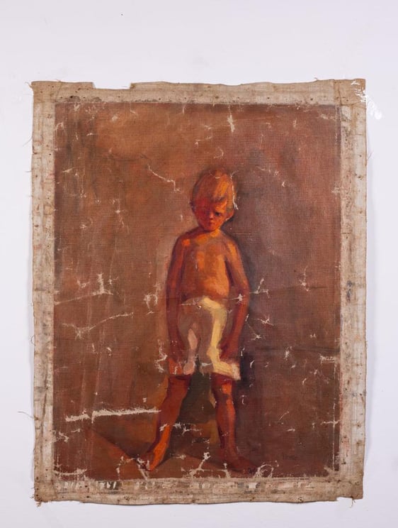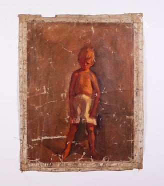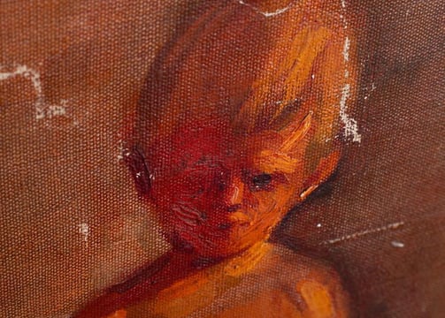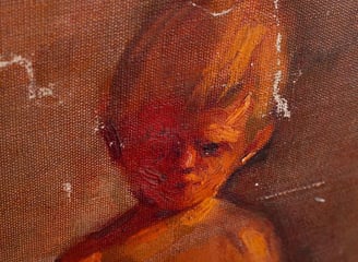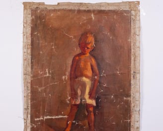 Predominan los tonos cálidos oscuros: tierras, ocres y sombras profundas, en lugar del azul frío característico del periodo azul. Esto puede apuntar a una etapa de exploración previa de temas humanos con una paleta más terrosa y una técnica menos depurada. La textura visible del lienzo y el deterioro del material refuerzan la sensación de paso del tiempo y fragilidad, casi como si el niño estuviera atrapado no solo en la imagen, sino en la historia misma.