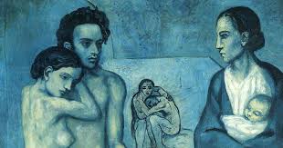 Una de las obras más complejas del periodo azul, con un fuerte simbolismo existencial. Las figuras humanas están cargadas de tensión emocional, en una escena que parece hablar de pérdida, elección y destino. La figura infantil aparece nuevamente como símbolo de fragilidad.